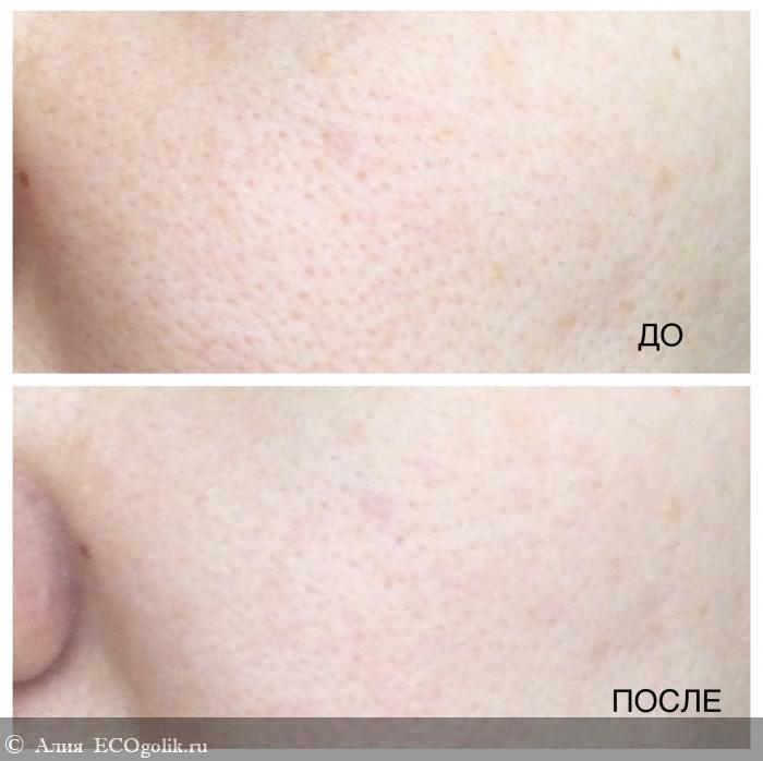 При регулярном использовании средство повлияло и на мои родные черные точки. Их стало заметно меньше. Поры чистые, уже, кожа более матовая, нет жирного блеска.
