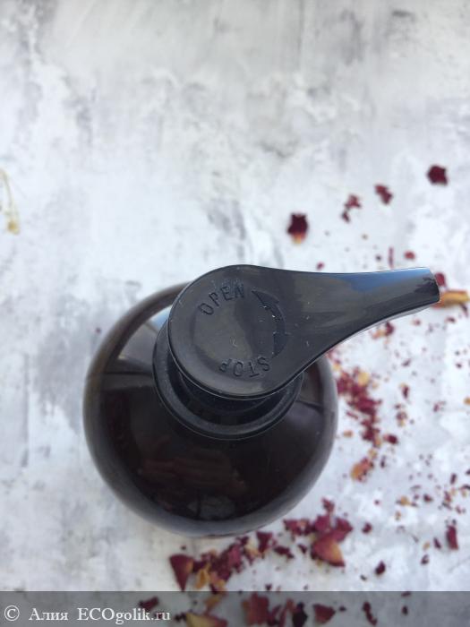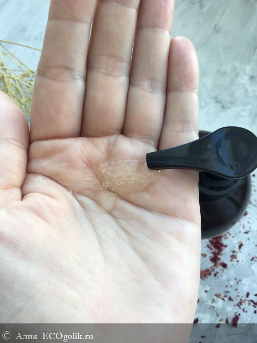 Флакон оснащен помповым дозатором с поворотным механизмом, идеально подходящим для такой гелевой консистенции.
