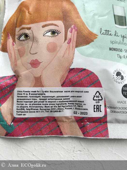 Альгинатная крем-маска для жирной кожи лица Olivia Спирулина молоко от PuroBio