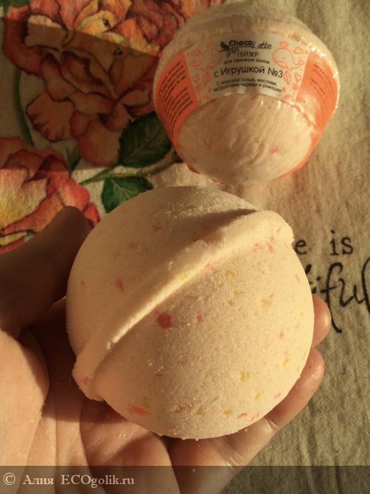 Гейзер от ChocoLatte нам очень понравился. Он безумно приятно пахнет, активно бурлит, оказывает на кожу благоприятное воздействие. А спрятанная внутри шарика игрушка, дарит море эмоций ребёнку!