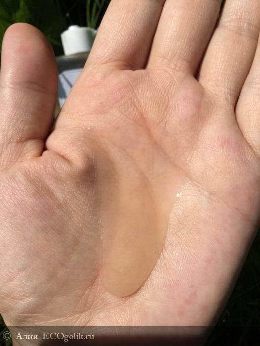 Средство находится в прозрачном флаконе, поэтому легко видно не только цвет геля, но и сколько его осталось в упаковке. Тара комфортная для нажатия - сделана из достаточно мягкого пластика.
