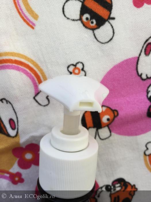 Такой дозатор как нельзя кстати для детского шампуня. Не надо брать флакон на руку, чтобы достать содержимое. Но помпа именно этого средства не совсем обычная. Не сразу поняла, почему при нажатии шампунь «плюётся». Даже сравнила с другими: