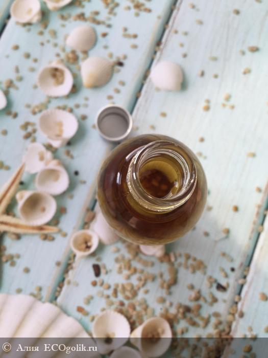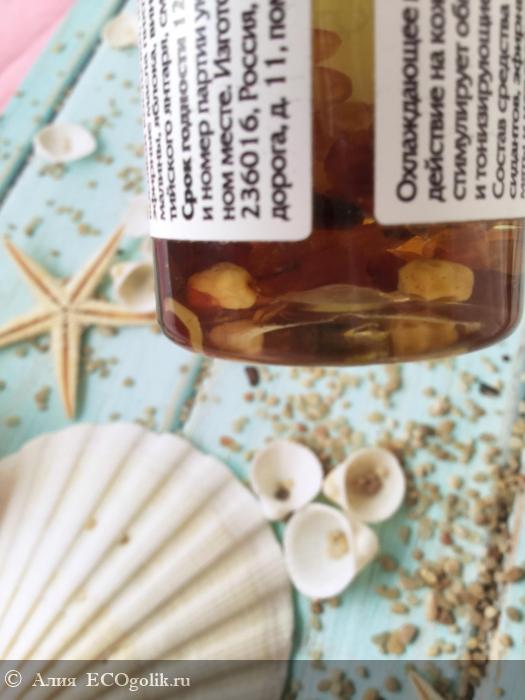 . Столько полезных и ценных масел для питания кожи! Балтийский янтарь, который не знаком эко-кролику, находится на дне флакона. Смотрится очень красиво и необычно.