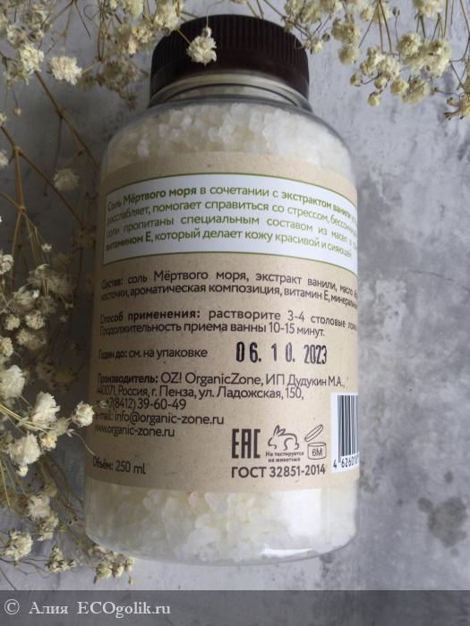 Осталась очень довольна морской солью с ароматом ванили от OrganicZone. Я прямо-таки почувствовала себя как в spa-салоне
