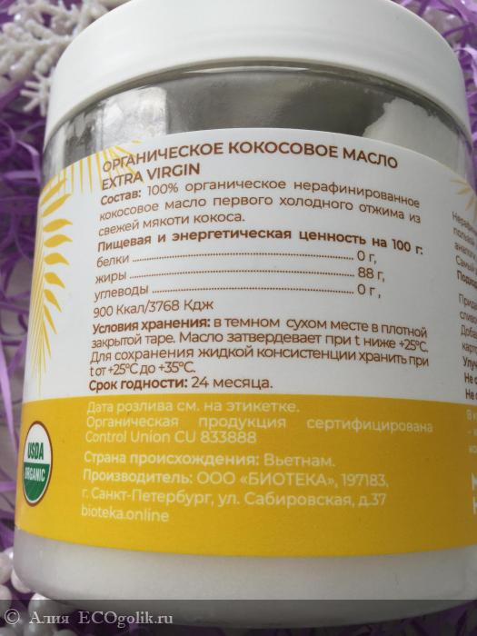 Алия: Органическое кокосовое масло BIOTEKA Extra Virgin: НЕрафинированное, НЕдезодорированное, 100% натуральное, пищевое