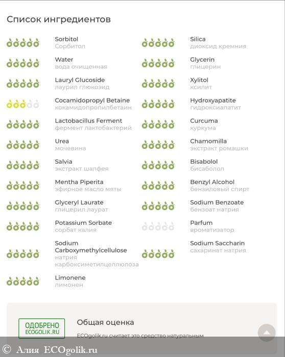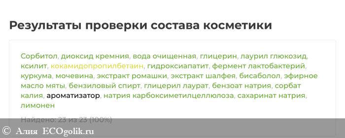 Эфирное масло мяты в составе дезодорирует полость рта, освежает дыхание. Свежесть хватает действительно надолго, в моей памяти это самая насыщенная натуральная мятная паста
