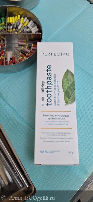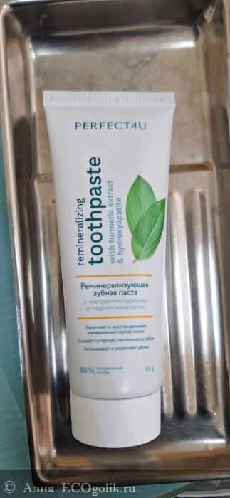 Сегодня хочу поделиться впечатлениями о реминерализующей зубной пасте с экстрактом куркумы и гидроксиапатитом от российского бренда PERFECT4U.