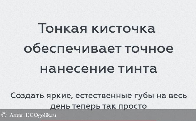 . Ведь при всём желании его невозможно и нереально нанести идеальным слоем по контуру губ. Консистенция тинта не позволяет этого делать, да и такая кисточка здесь не совсем уместна