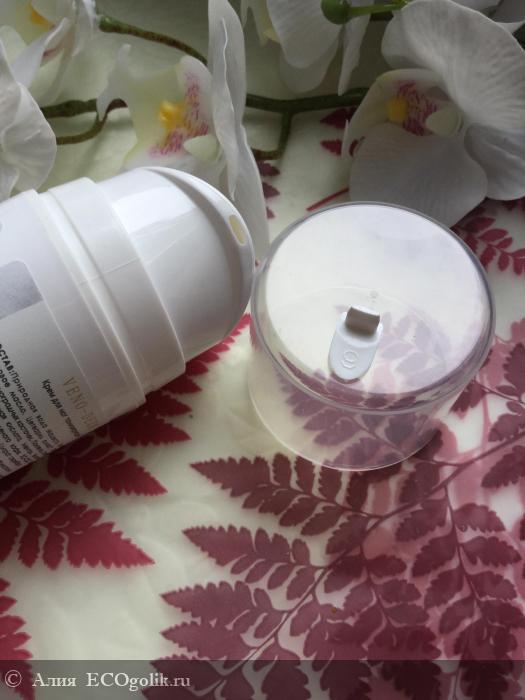 Дозатор помповый. Это не только практично и выглядит дорого, но и гигиенично. Также крем не контактирует с кислородом и не окисляется, что тоже не полезно для натуральных косметических средств.
