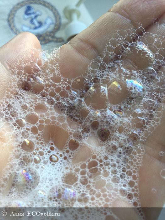 Мыло легко распределяется по рукам, хорошо взбивается и пенится.