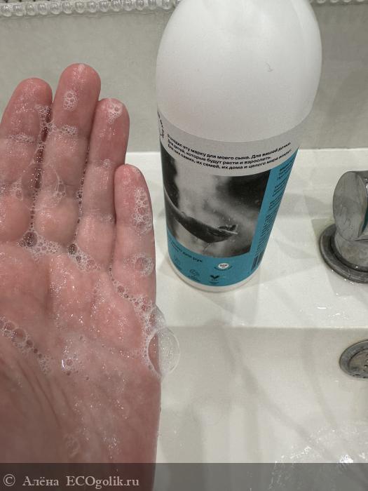 Пенится достаточно хорошо и легко смывается водой. При этом расход экономичный.