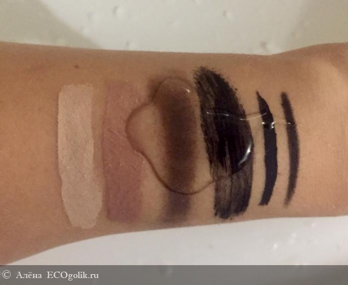 Покажу, как данное средство смывает косметику. Нанесла: карандаш, подводку, тушь(водостойкая), тени для бровей, блеск для губ, консилер.