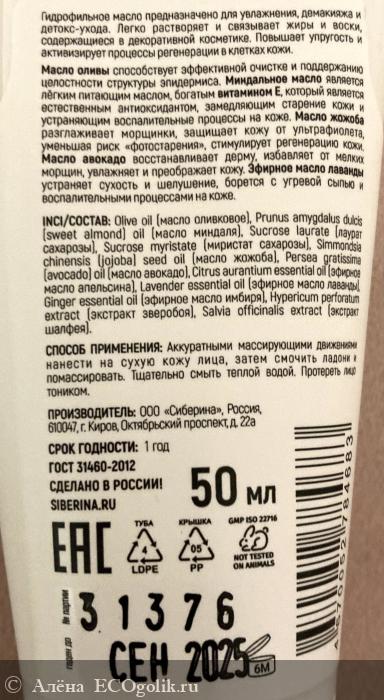 Алёна Королёва: Гидрофильное масло «Снятие макияжа и увлажнение кожи» Siberina