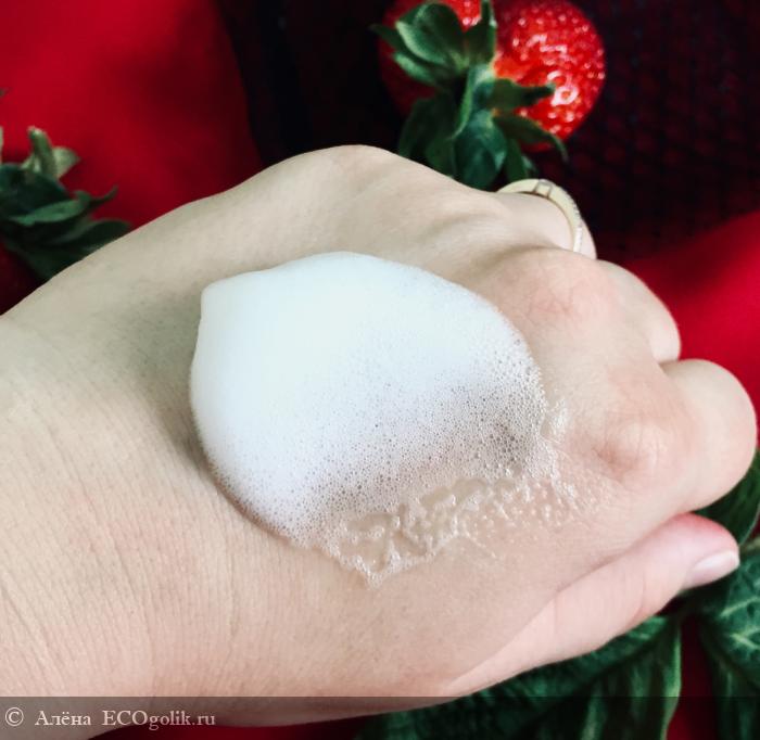 Очищает мусс тщательно, но не до скрипа, а очень деликатно. И если, мне всегда было достаточно того, что «умывалка» не сушит кожу, то данный мусс ее даже немного увлажняет. Хотя я никогда в это не верила