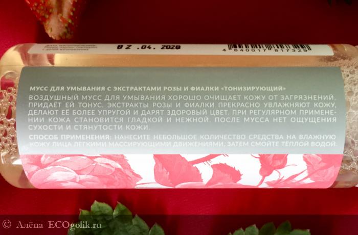 Описание: Воздушный мусс для умывания хорошо очищает кожу от загрязнений, придает ей тонус. Экстракты розы и фиалки прекрасно увлажняют кожу, делают ее более упругой и дарят здоровый цвет. При регулярном применении кожа становится гладкой и нежной. После мусса нет ощущения сухости и стянутости кожи.
