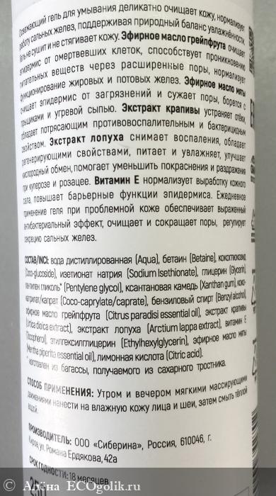 Сегодня расскажу про Освежающий гель для умывания «Нормализация кожного себума и глубокое очищение пор» SIBERINA