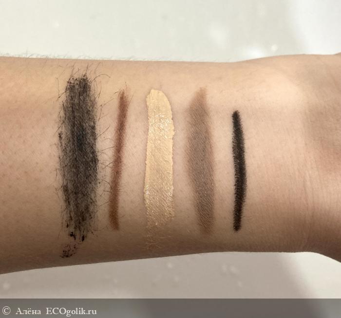 Пенка достаточно деликатная и бережная. Но, при этом отлично очищает поры. Могу быть в этом полностью уверенной, так как я частенько пользуюсь ВВ-кремом (ненатуральным). И если бы данная пенка со своей задачей не справлялась, то у меня давно бы уже вылезли прыщики и поры забились. С водостойкой тушью средство также справляется очень хорошо. Покажу свотчи: