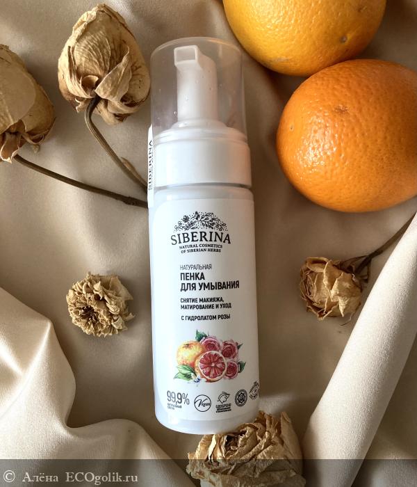 Решила попробовать очередную умывалку от бренда Siberina. На этот раз выбор пал на пенку для умывания «Снятие макияжа, матирование и уход» с гидролатом розы.