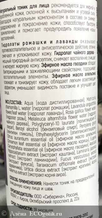 Алёна: Тоник для лица противовоспалительный SIBERINA