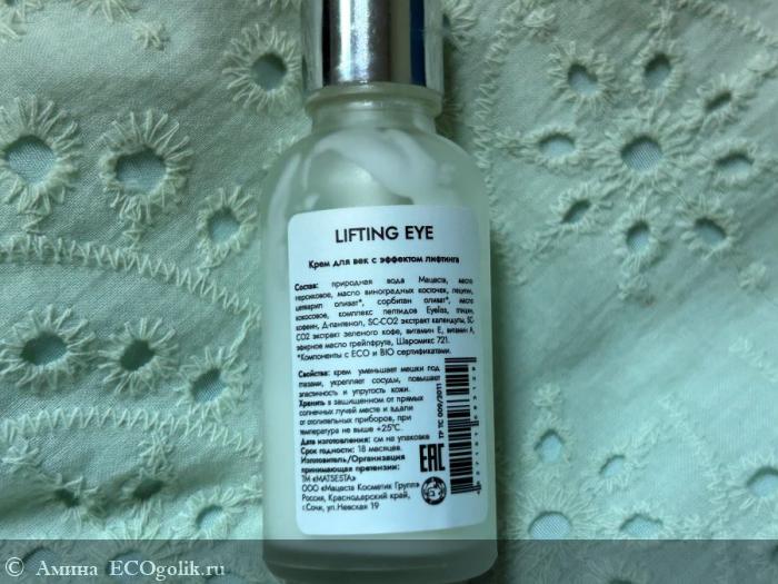 С годами под глазами у меня возникли проблемы. Кожа истончилась, наметились морщинки. Еще есть плохая привычка щуриться, что тоже внесло свою лепту. На средстве для ухода за кожей под глазами я решила не экономить. В дополнение к патчам Мацеста я заказала и их крем для век LIFTING EYE с эффектом лифтинг
