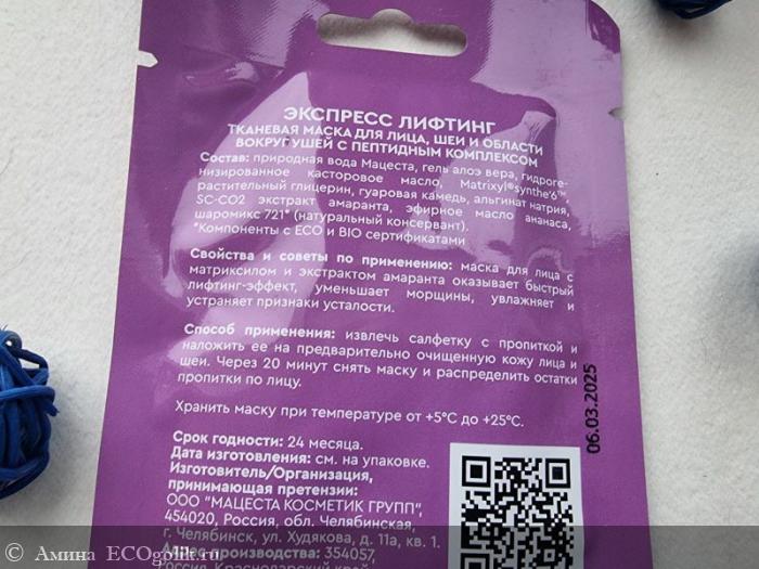 Тканевая маска с пептидным комплексом "Экспресс лифтинг" Matsesta – это экспресс бьюти продукт. По действию он просто отличный.