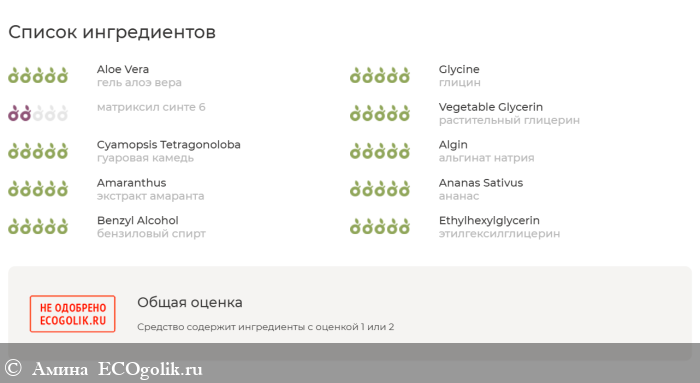 Однако Экоголик не одобряет этот продукт как раз из-за пептида в составе. Матриксил Синте 6 очень интенсивно действует на кожу, поэтому у некоторых людей может вызывать аллергию. Экоголик причисляет его к критичным компонентам.