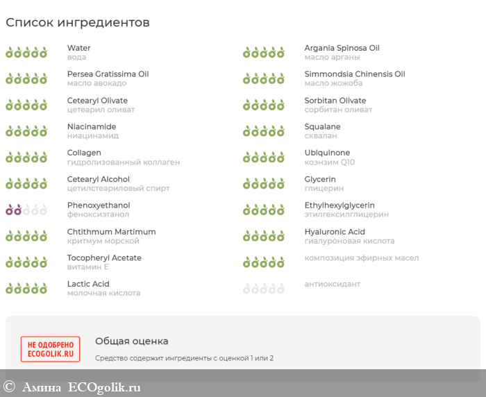 Минус только один – состав не одобрен из-за включения в состав феноксиэтанола. Для меня это не проблема, в общем-то, поскольку крем подошел моей коже идеально.