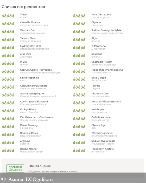 Это замечательная сыворотка с натуральным составом и питательной текстурой с увлажняющим и антивозрастным эффектом. Эффект появляется сразу – это комфорт. А более подтянутой кожа становится примерно через две недели использования этой сыворотки. Этот прекрасный натуральный продукт я рекомендую для любого типа кожи как имеющий легкую текстуру и универсально нужный антивозрастной эффект.