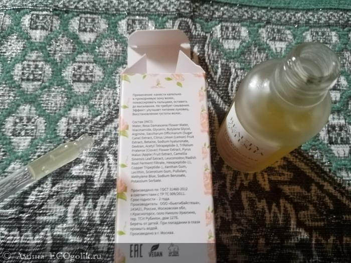 Активы сыворотки эффективные, с доказанной эффективность против поредения волос – это пептиды (три разных), запантентованный комплекс, а также гиалуроновая кислота, аргинин, несколько экстрактов.