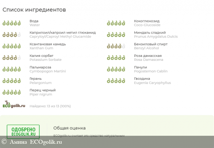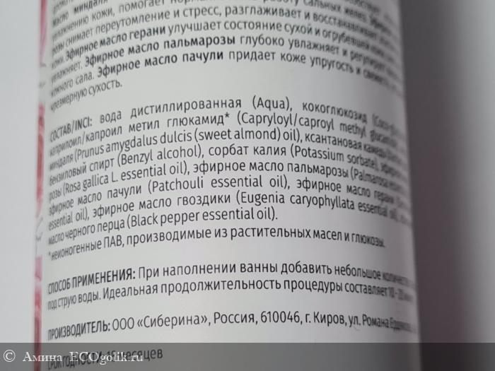 Состав средства натуральный. Экоголик красноречиво это подтверждает "зеленой печатью "одобрено". Наличие большого количества масел позволяет защитить кожу от действия воды, смягчить воздействие. Действительно, после ванны с этой пеной я чувствую, что кожу не сушит. Нет ощущения стягивания.