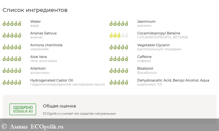 Состав в этом плане полностью оправданный. К примеру, тут есть кофеин, известный своим лифтинг эффектом. Также в составе можно найти антиоксиданты.