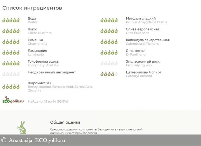 Крем обладает мощным увлажнением и питанием кожи благодаря сочетанию трех масел: миндального, масла кокоса и масла оливы. Д-пантенол обеспечивает защитную функцию от воздействия агрессивных внешних факторов, снимает раздражение и зуд. Экстракты ромашки и календулы способствуют быстрому заживлению поврежденной кожи, оказывают успокаивающее и смягчающее действие на сухих участках. Витамин Е подтягивает и разглаживает кожу. Крем создает защитную пленку натурального происхождения, которая позволяет коже дышать, насыщает витаминами и минералами.
