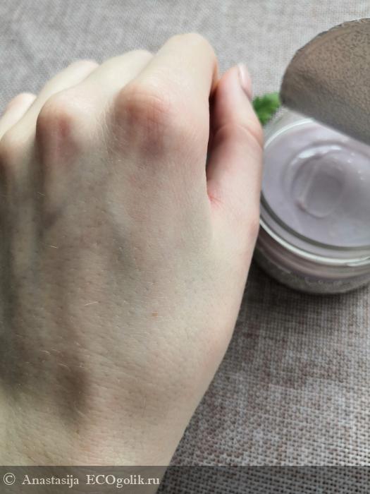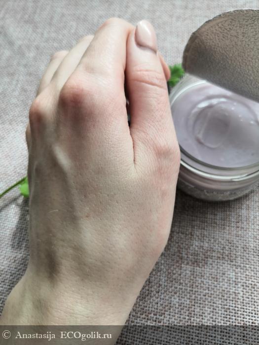 Текстура у крема плотная, но нежная. Легко распределяется по коже. Хоть крем и плотный, но мгновенно впитывается кожей.