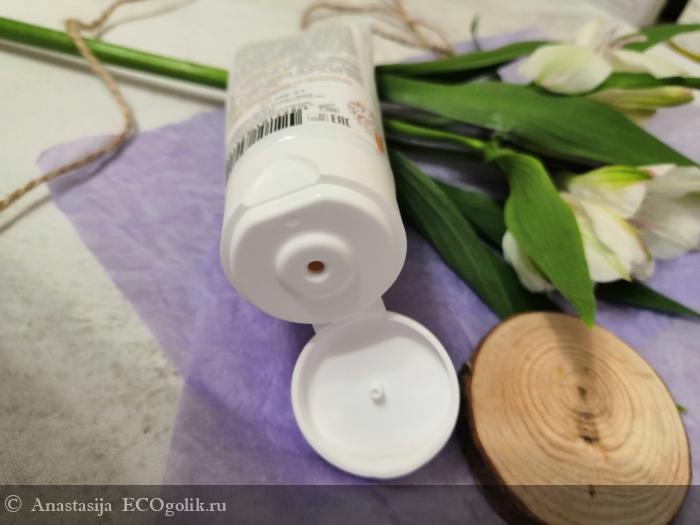 Гоммаж представлен в тюбике с крышкой флип-топ. Изначально имелся контроль вскрытия, ведь у средства срок годности после всего 3 месяца.