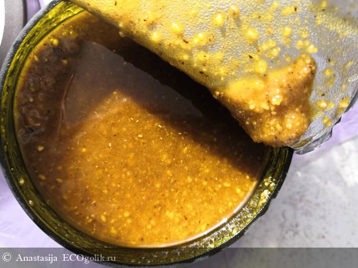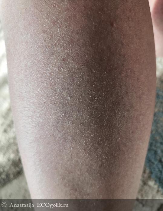 В процессе скраб немного эмульсирует, масла активно впитываются кожей, при этом обильной жирной пленки на коже совсем не остается.