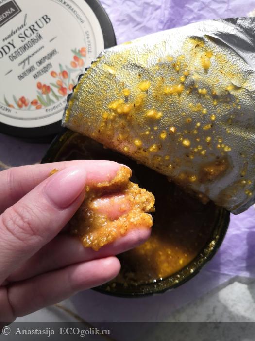 Аромат у скраба легкий и ненавязчивый, отчетливо ощущается облепиховый аромат с некой сладостью эфирного масла апельсина.