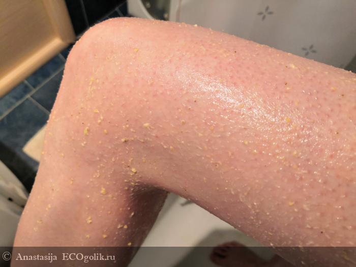 Большое преимущество такого скраба, если сравнивать с сахарными или соляными, в том, что частички не растворяются со временем, а жесткие частички дробленой крупы обеспечивают интенсивное скрабирование.