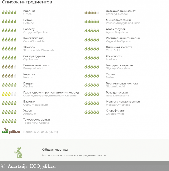 лаурилглюкозида натрия, кокоилглутамата натрия, лаурилглюкоз- карбоксилата натрия и кокамфоацетата натрия (разрешено ECOCERT для натуральной косметики), которые полностью одобрены сервисом проверки.