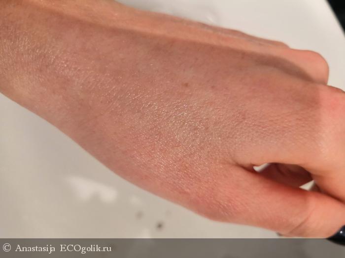 После применения виден жирноватый блеск, после, когда масло впитается, он исчезнет, но кожа на ощупь заметно мягче.