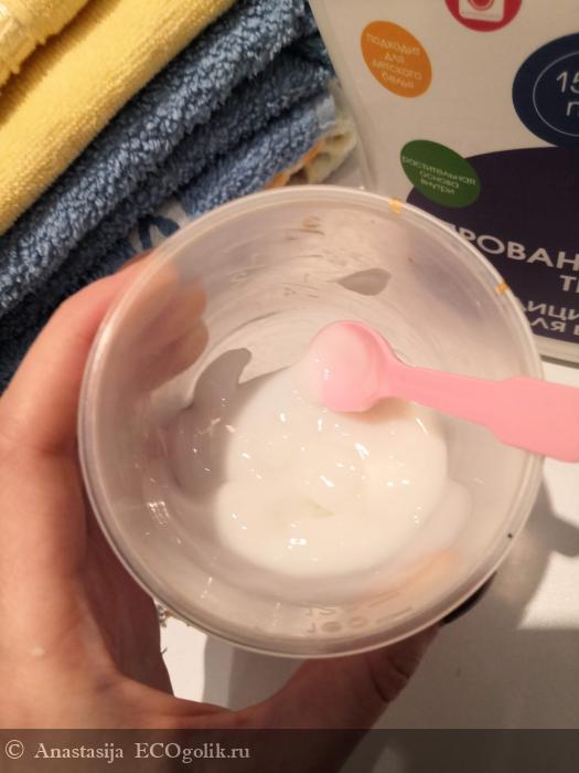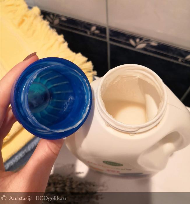 Применение кондиционера такой консистенции в чистом виде невозможно. И честно, я задолбалась каждый раз его разбавлять. Да и толку от разбавления особо нет, потому что кондиционер ужасно забивает стиральную машину.
