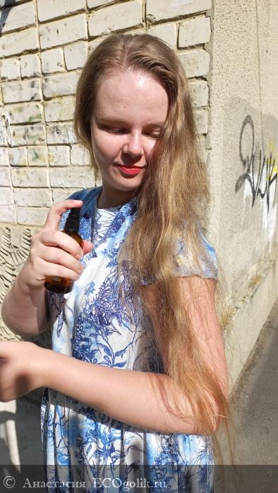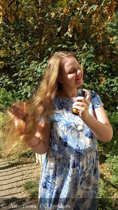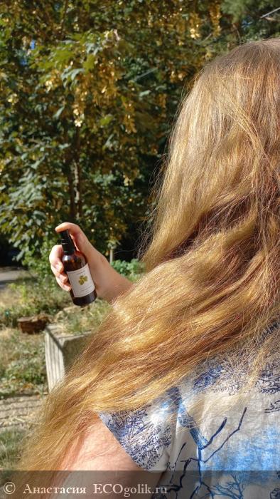 Я люблю орошать гидролатом волосы и потом ощущать как моя золотая копна излучает тонкий, еле уловимый аромат. Стойким я его не назову. На своих волосах я его слышу максимум четверть часа. Но такова природа гидролата. Он как летний "слепой" дождь: освежает, дарит лёгкую прохладу и затем следы его быстро исчезают под теплом солнца, оставляя лёгкий аромат природы и свежести
