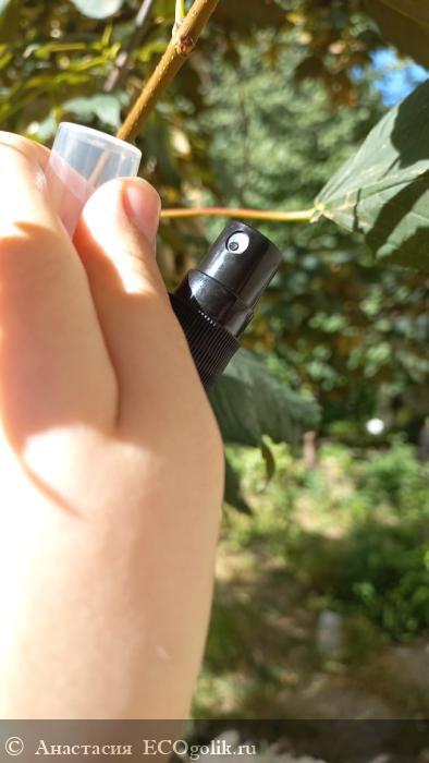Не могу не отметить дизайн и удобство продукта. Гидролат разлит в бутылочку тёмного стекла. Сверху пульверизатор от случайного нажатия защищает пластиковая крышка. Сидит она довольно плотно. Я всегда таскаю гидролат с собой и крышка не потерялась )