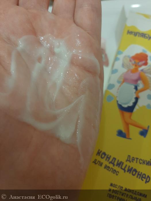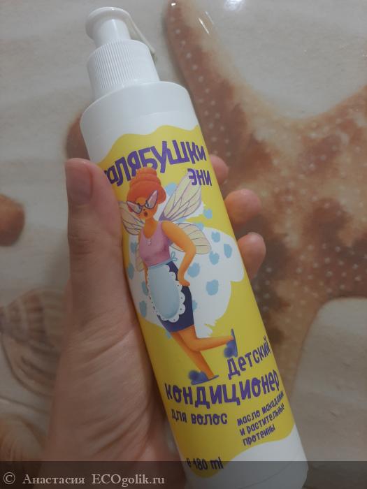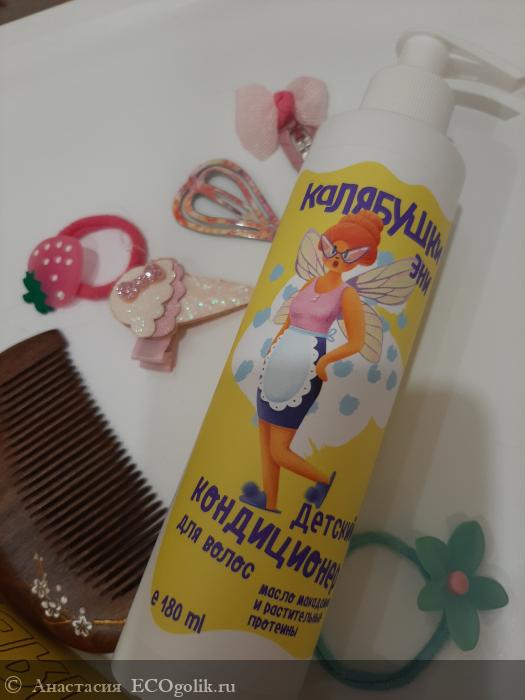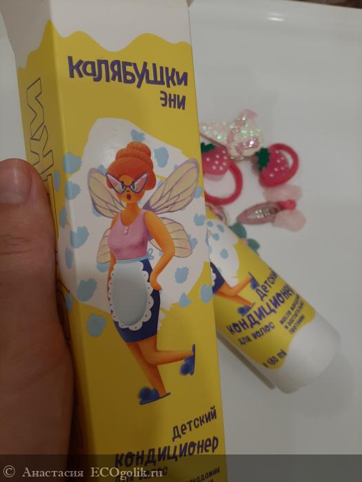 До Мастерской Олеси Мустаевой у дочки не было личного кондиционера. Мы использовали только детский шампунь. А для облегчения расчесывания детский спрей из масс маркета. Серия Калябушки стала первой из попавшихся мне детских натуральных гигиенических средств. Дочка клюнула на яркий дизайн и красивого персонажа Эни. А я на положительные отзывы и натуральный состав) Так была совершена покупка.