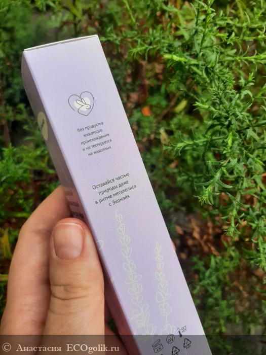 Традиционно сначала об упаковке. Это картонная коробка лавандового цвета. Вокруг вы найдёте всю информацию о продукте. А если отсканировать специальный код то можно посмотреть урок о нанесении косметики Ecomake. Я считаю это интересным. Так можно немного лучше узнать бренд, познакомиться с некоторым ассортиментом и выбрать что-то для себя