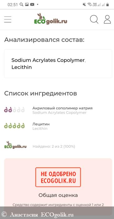 В скобках указаны составляющие лецигеля. Один из них, Lecithin, вопросов не вызывает. А вот второй, Sodium Acrylates Copolymer, снова с оценкой в 2 яблока