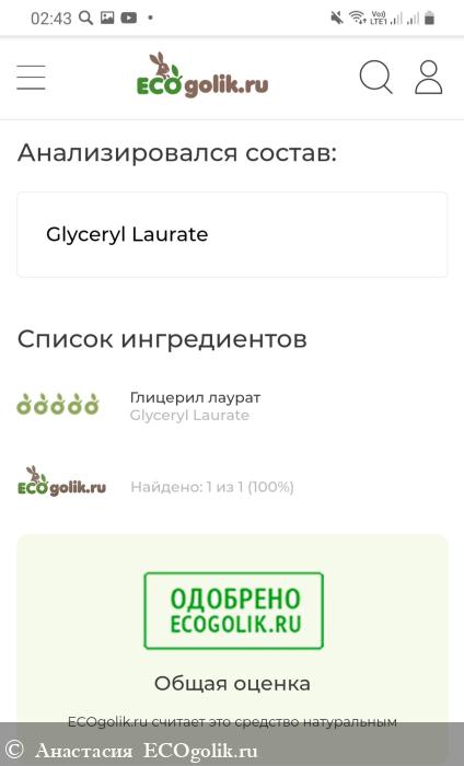 Второй компонент консерванта Glyceryl Laurate. Тут все отлично 👍