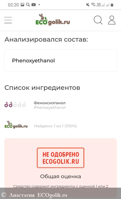 Phenoxyethanol - Экоголиком не одобрен. Оценка критична, всего 2 яблочка