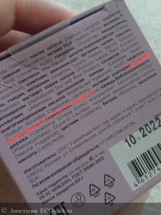 💚 глюкозамин. Вырабатывается из хитина морских животных: креветок, лобстеров или крабов способом глубокого гидролиза. Признаться честно не очень понимаю что это значит, однако вне целостного состава я нашла этот компонент на Экоголике и кролик ставит ему оценку 4
