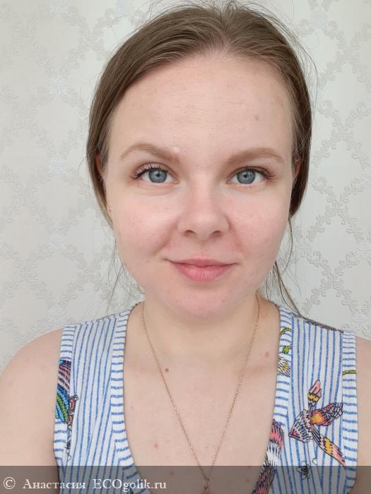 На первом фото я без туши. На втором с ней. Глаза немного выделяются. Я привыкла к более выраженному эффекту, поэтому в таком виде тушь не ношу. Чтобы показать как наслаивается тушь, делаю второй слой справа