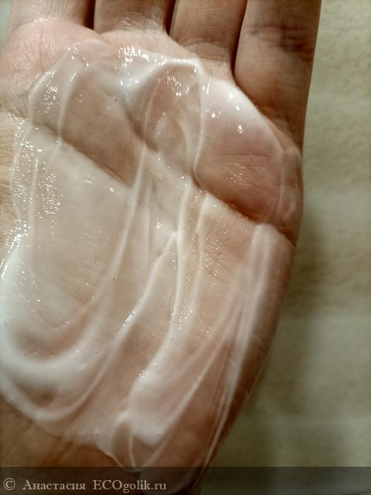 Сам кондиционер белого цвета. Он лёгкий по текстуре, легко распределяется по волосам и в момент нанесения уже становится понятно что волосы будут невероятно гладкие и расческа будет по ним буквально скользить